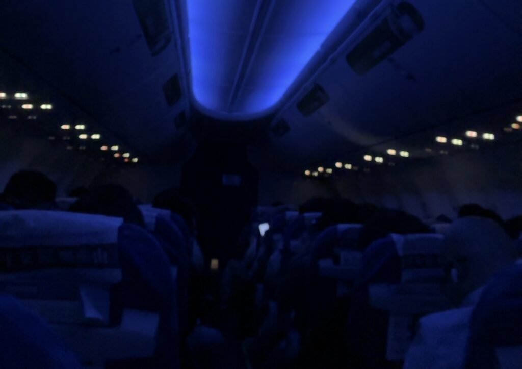 到着時刻は1時50分を予定していましたが、実際に着陸したのは1時頃で50分ほど早く着きました。早くホテルで寝たいと思ってたのでよかったです。