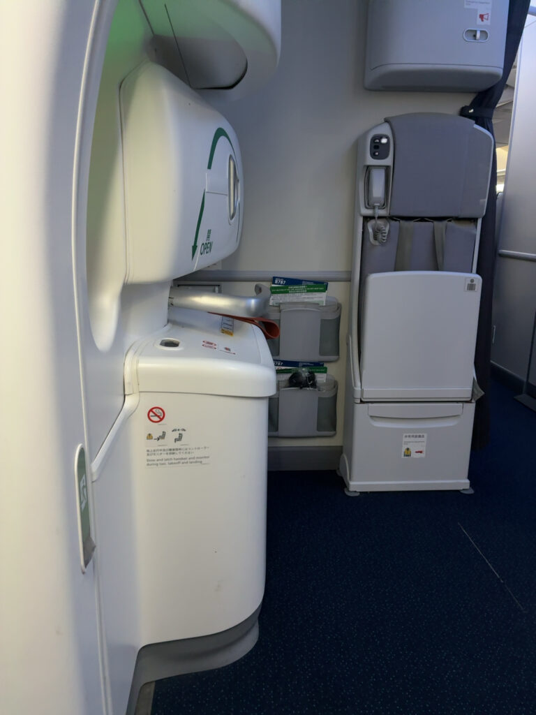 CAさんが斜め前に座ってる場所になります。