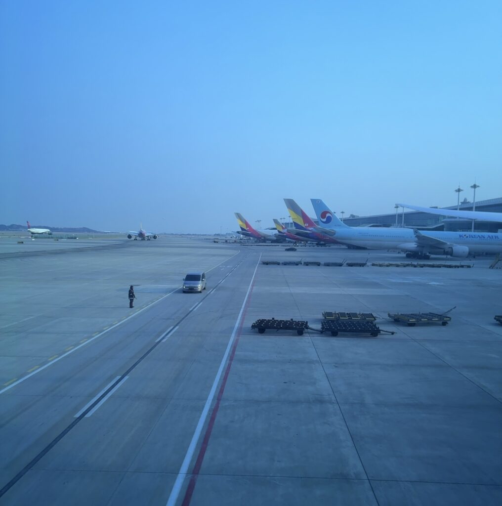 気づけば仁川空港です。アシアナと大韓航空の飛行機が並んでます。